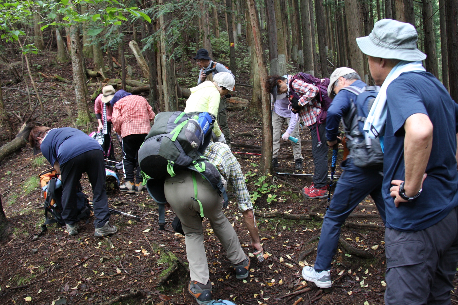 | 山ヒルにほぼ全員噛まれ、登山靴の底の剥がれ、転倒による打撲が有りましたが楽しい山行でした。 | ||||||