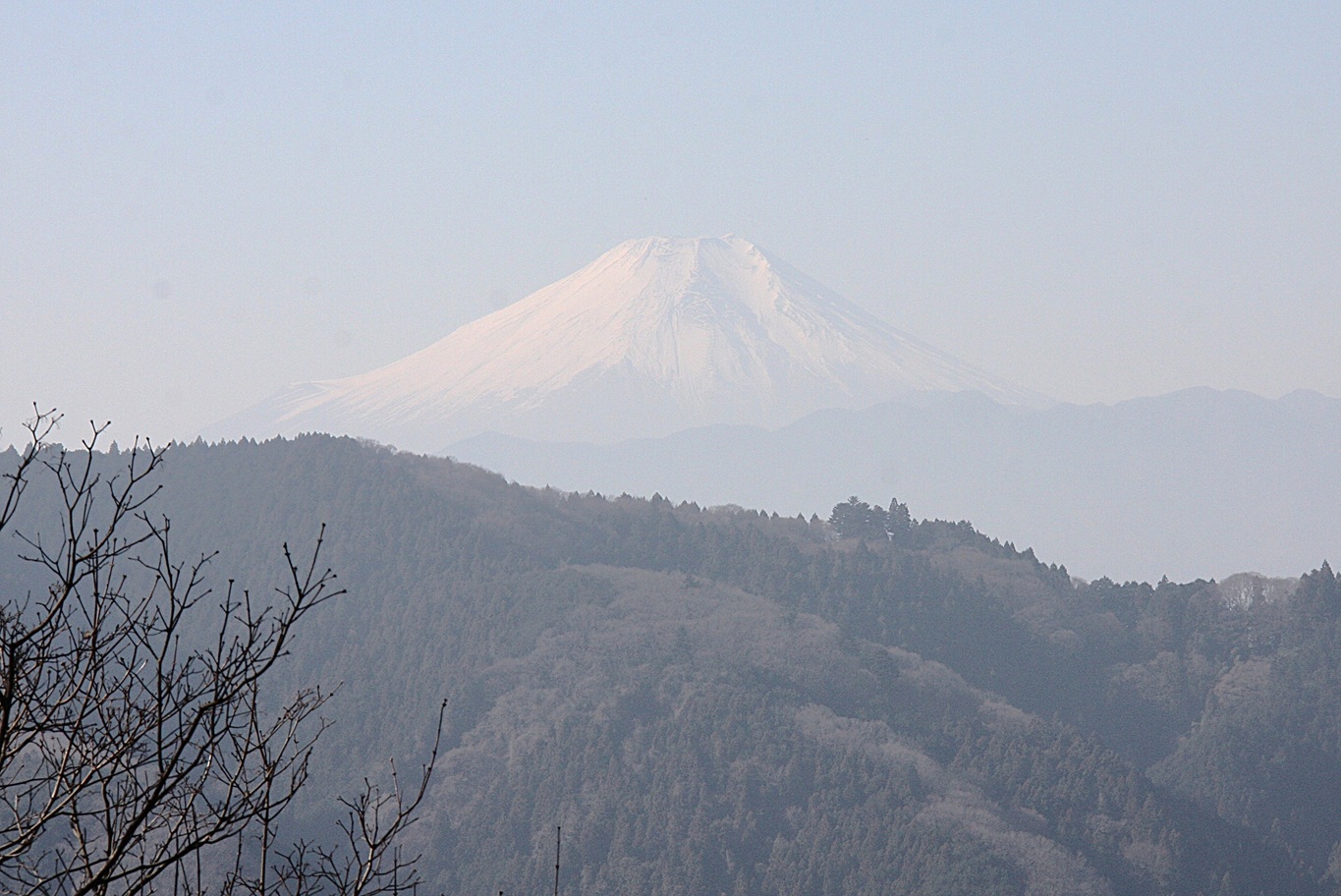 ここは、絶好の休息地で西側の樹間から富士山・景信山・小仏城山などの絶景が楽しめた。 |