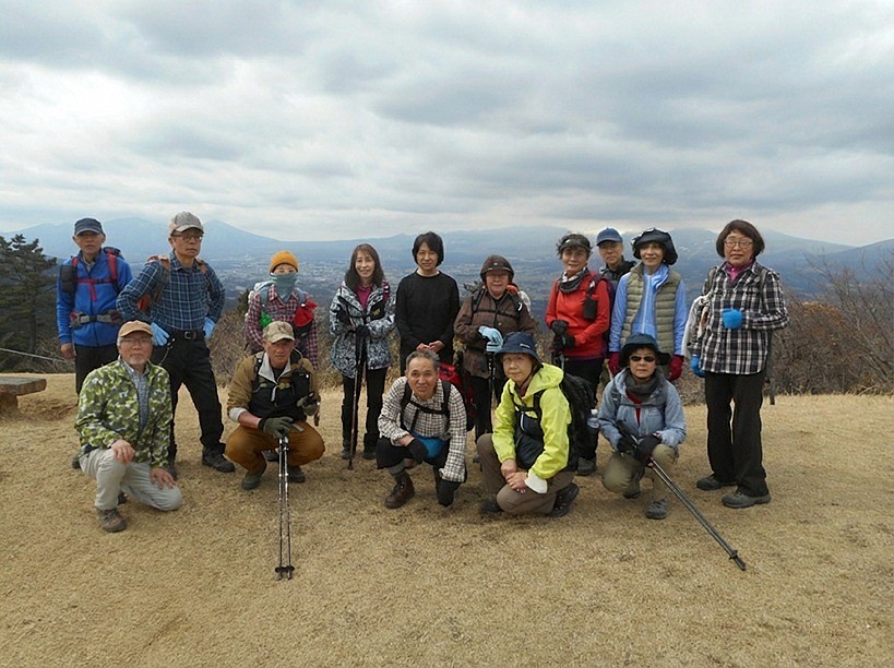 にして集合写真。公園で昼食をとり12時55分万葉公園ファミリーコースに向かう。 |