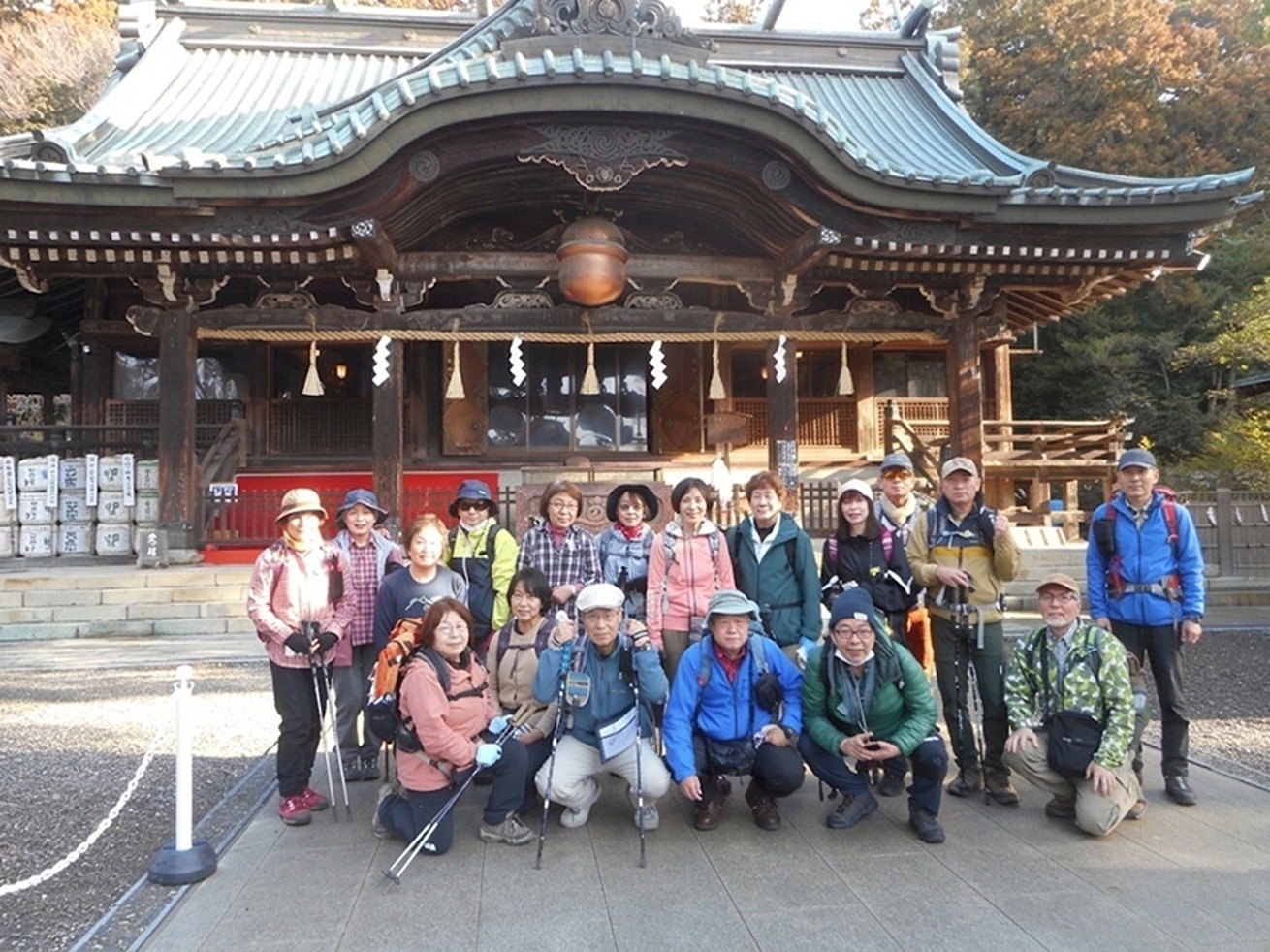 | 筑波山神社に7:45に到着。参拝をしてから集合写真撮影。 | ||||||||