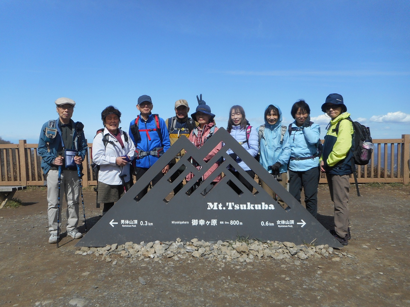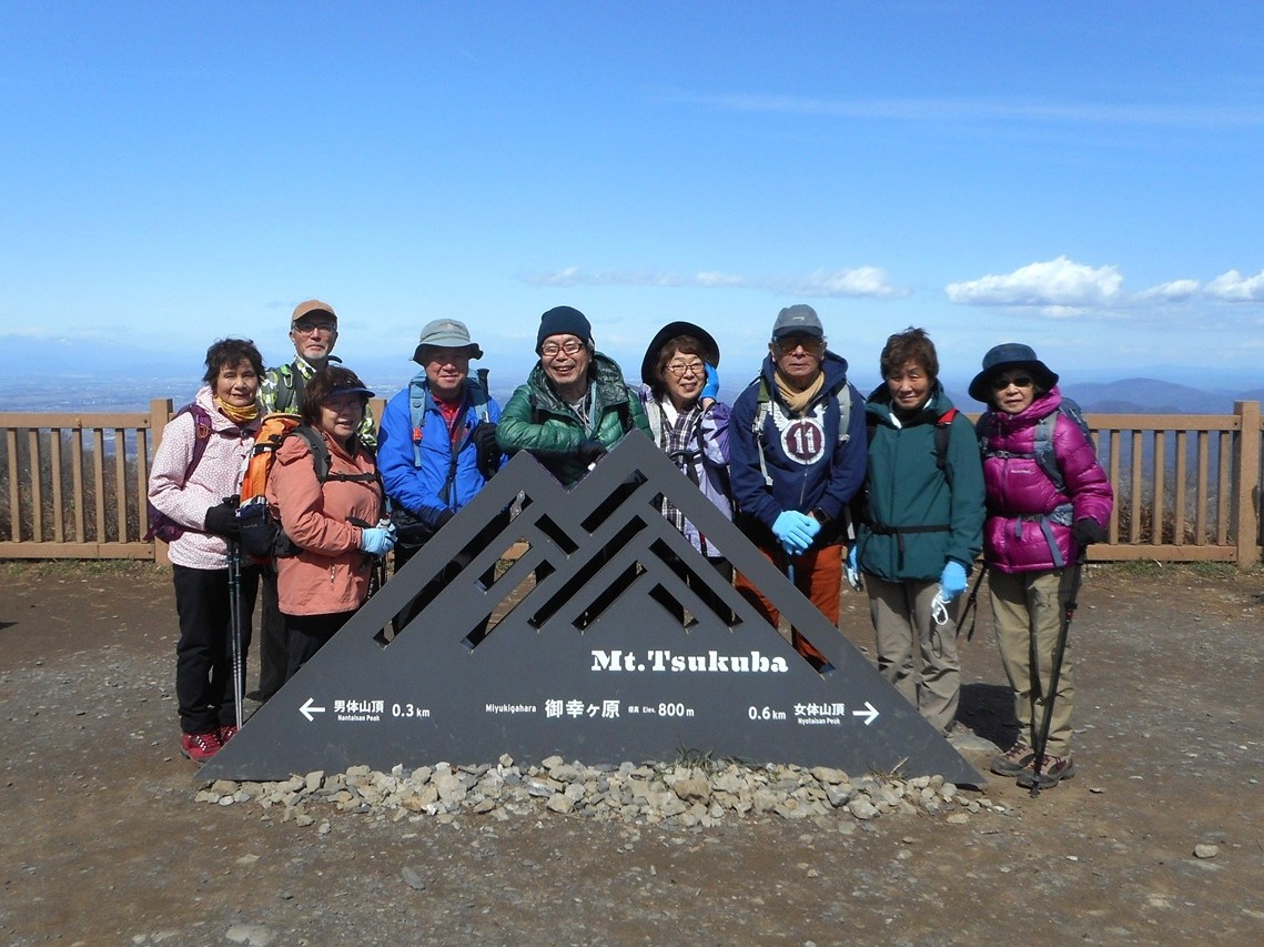 | 日本百名山の筑波山女体山に10:35到着。土曜日なので沢山の登山客でごちゃごちゃしていた | ||||||||